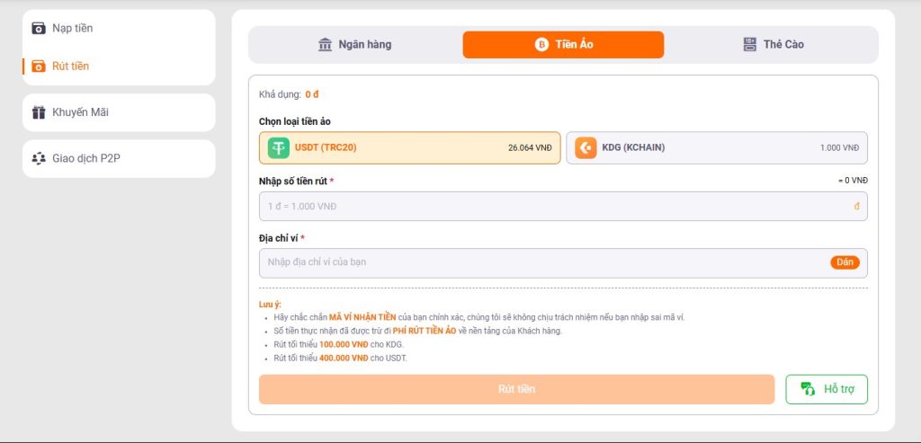- Rút tối thiểu 100.000 VNĐ cho KDG.